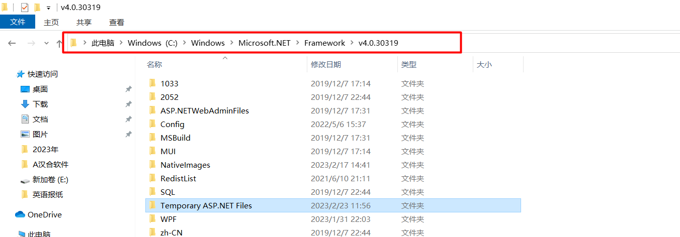 1、进入C:\Windows\Microsoft.NET\Framework\v4.0.30319\ 如果Temporary ASP.NET Files 文件夹不存在,则创建一个